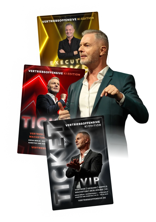 Die Vertriebsoffensive 2025 ist das größte Vertriebsevent Europas. Ein unvergessliches Vertriebs-Seminar von und mit Dirk Kreuter, das in diesem Jahr nur live und vor Ort in Berlin stattfindet: am 04.10. und 05.10.25.